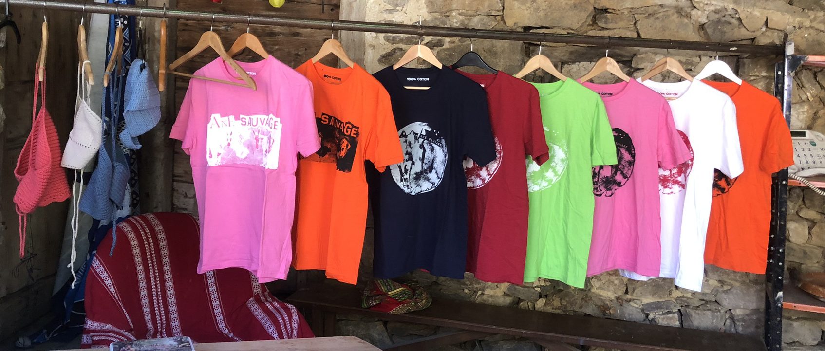 Pour cette édition Âne Sauvage, on prépare un merch tout neuf, tout sucré, en édition limitée : une gamme de t-shirts 100 % coton, pleins de couleurs, réalisés en sérigraphie, toujours en collaboration avec Hugo Bourgois.