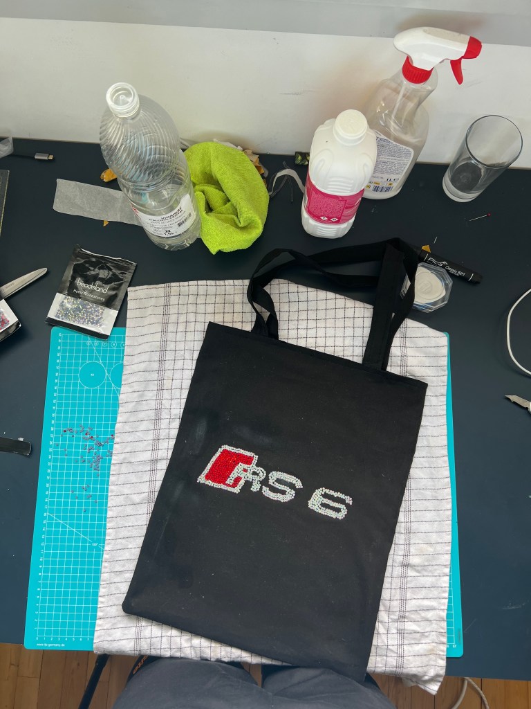 Sac doublée 100% coton, machine a coudre ,Strass thermocolant, Novembre 2024